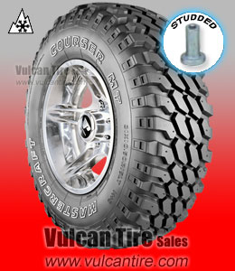 THIS TIRE COMES WITH METAL STUDS INSTALLED FOR THE ULTIMATE IN SNOW AND ICE TRACTION! Don't want studs?Click here for the unstudded version. High Void Traction Tread Substantial deep shoulder and center lugs resist abrasion and enhance off road traction and treadwear. Solid, Blocky Tread Design Resists uneven wear and provides exceptional dry braking capability. NOTE: Due to the extreme traction characteristics if this tire with studs installed, it is recommended that tires be mounted in sets of four to provide the best tire performance. M+S Rated Mastercraft tires are manufactured by Cooper Tire Co.