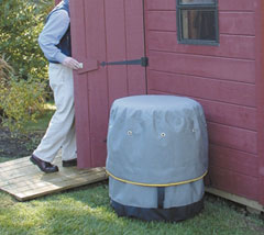 The Tire Garage allows you to keep tires outside and free up extra space in your storage areas. This innovative and new product is made of the same rugged weatherproof shell used to make boat covers and awnings. It retains its color and strength for years of normal exposure to sunlight and rain, resists mildew and cleans easily. Also great for inside storage, the Tire Garage will cover up that unsightly pile of tires. Holds four average-sized tires.