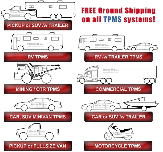 Click the image below that best represents your vehicle and/or trailer. Pickup Truck with a Trailer TPMS RV TPMS RV with a Trailer TPMS Mining and OTR TPMS Commercial TPMS Car, Minivan or SUV TPMS Car, Minivan or SUV with a Trailer TPMS Pickup Truck TPMS Motorcycle TPMS